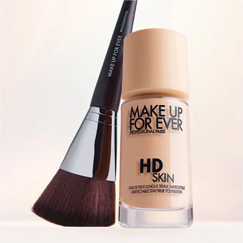 يمكنك استخدام الفرشاة لتطبيق ومزج القوام السائل والكريمي ، مثل كريم أساس اتش دي سكين.